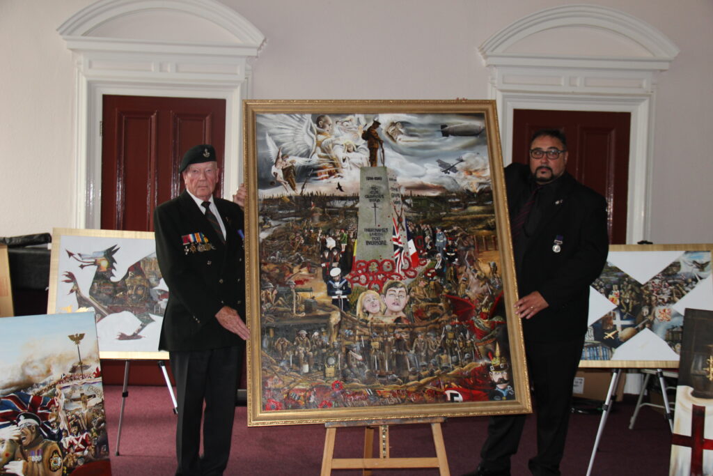 I added shame of field executions. “Shot at dawn” took young minds broken by war. A Vickers gun sentry scans with his team. Gas alarm ready, masks on. One corner holds a Royal Navy seaman. Opposite stands a weary soldier. Between them, war’s child victims clutch dad’s last letter from his body.At the base lies my hell view. Lucifer eyes Michael with a challenge. He brags of the doom he sparked. Lost souls fall or get pulled by demons. In a German trench, young Adolf Hitler peers across no man’s land. Demons whisper dark ideas. They show the swastika. It would later burn the world in fresh hell. Carnage unseen before pushed nations to ruin again. Remember foes too. A wooden cross marks an unknown German soldier. Iron Cross shines amid wire and poppies. German losses hit 2,037,000 by 1934 counts. Battlefield fades down the canvas. I had to note their pain. 1914-1918 Roll of Honour for Those Sharing My Name ARCHIE JOSEPH BURY PALLISER 1915 SPTS/426 PRIVATE Royal Fusiliers (City of London Regiment) Great Britain ARNOLD PALLISER 1916 15/696 PRIVATE Prince of Wales’s Own (West Yorkshire Regiment) Great Britain HARRY PALLISER 1918 306869 PRIVATE Prince of Wales’s Own (West Yorkshire Regiment) Great Britain JOHN ALFRED PALLISER 1918 60773 SERGT. Northumberland Fusiliers Great Britain JOHN CHRISTOPHER PALLISER 1916 3393 PRIVATE Durham Light Infantry Great Britain JOHN SYLVESTER PALLISER 1918 — MAJOR Alexandria Great Britain JOHN SYLVESTER PALLISER 1918 — MAJOR Machine Gun Corps Great Britain THOMAS PALLISER 1916 103404 SPR. Corps of Royal Engineers Great Britain WILLIAM PALLISER 1917 40747 PRIVATE South Wales Borderers Great Britain WILLIAM OWEN PALLISER 1918 30356 CPL. Alexandria Great BritainHow can you help? Share this page on social media. Show support for the project and those brave WW1 fighters.  SPR Palliser John RE & CPL RMP 1976-1986